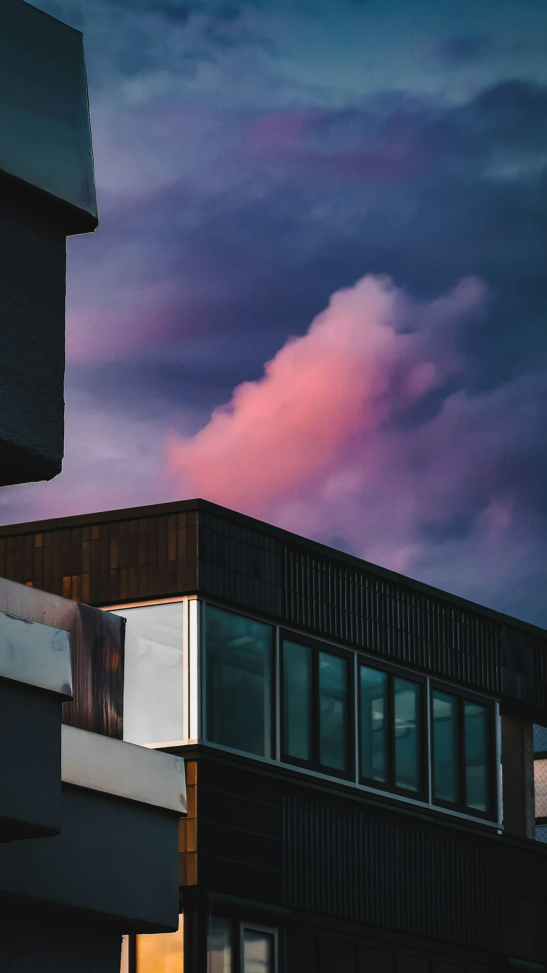 A stunning wallpaper featuring a majestic building silhouetted against a vibrant pink sky, filled with a breathtaking cloud formation. Perfect for adding a touch of dreamy beauty to your devices.