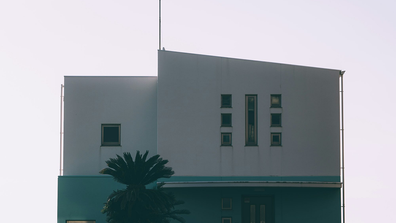a building with a tower in the background