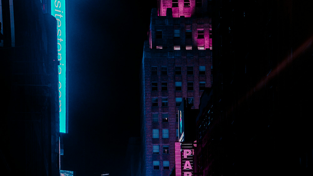 city street, night, neon signs, cityscape, urban, nightlife, vibrant, dark, lights, wallpaper