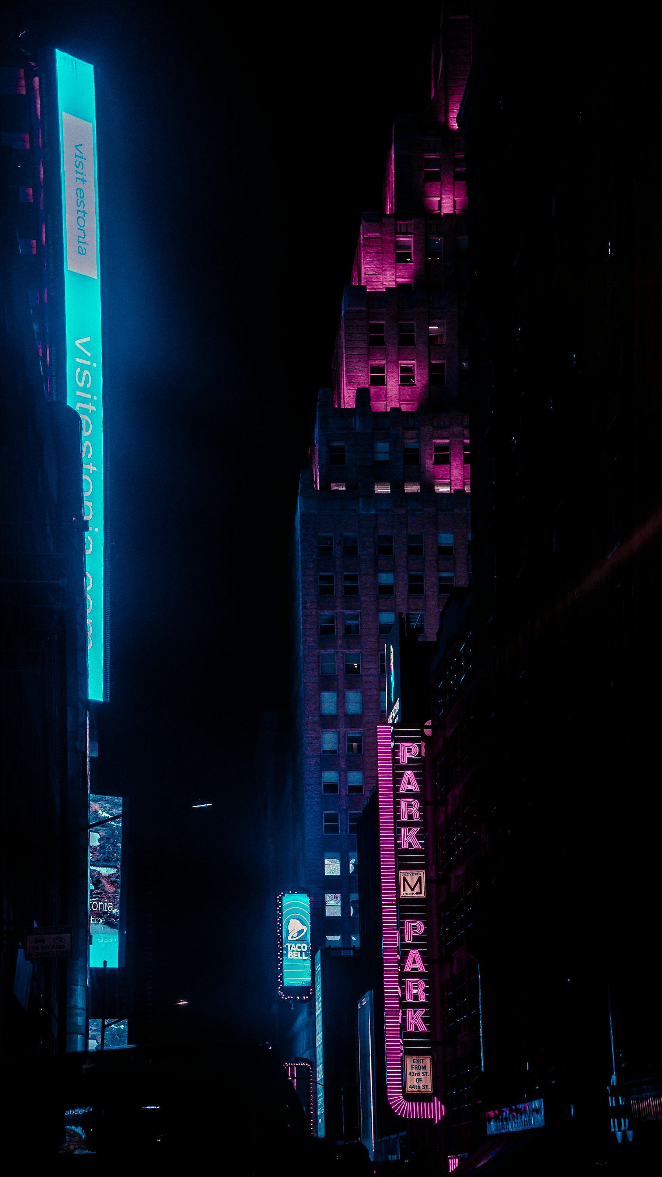 Immerse yourself in the dazzling glow of a bustling city street at night, illuminated by vibrant neon signs. This wallpaper captures the energy and atmosphere of urban nightlife.
