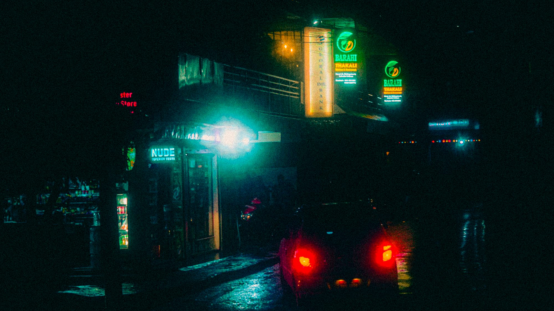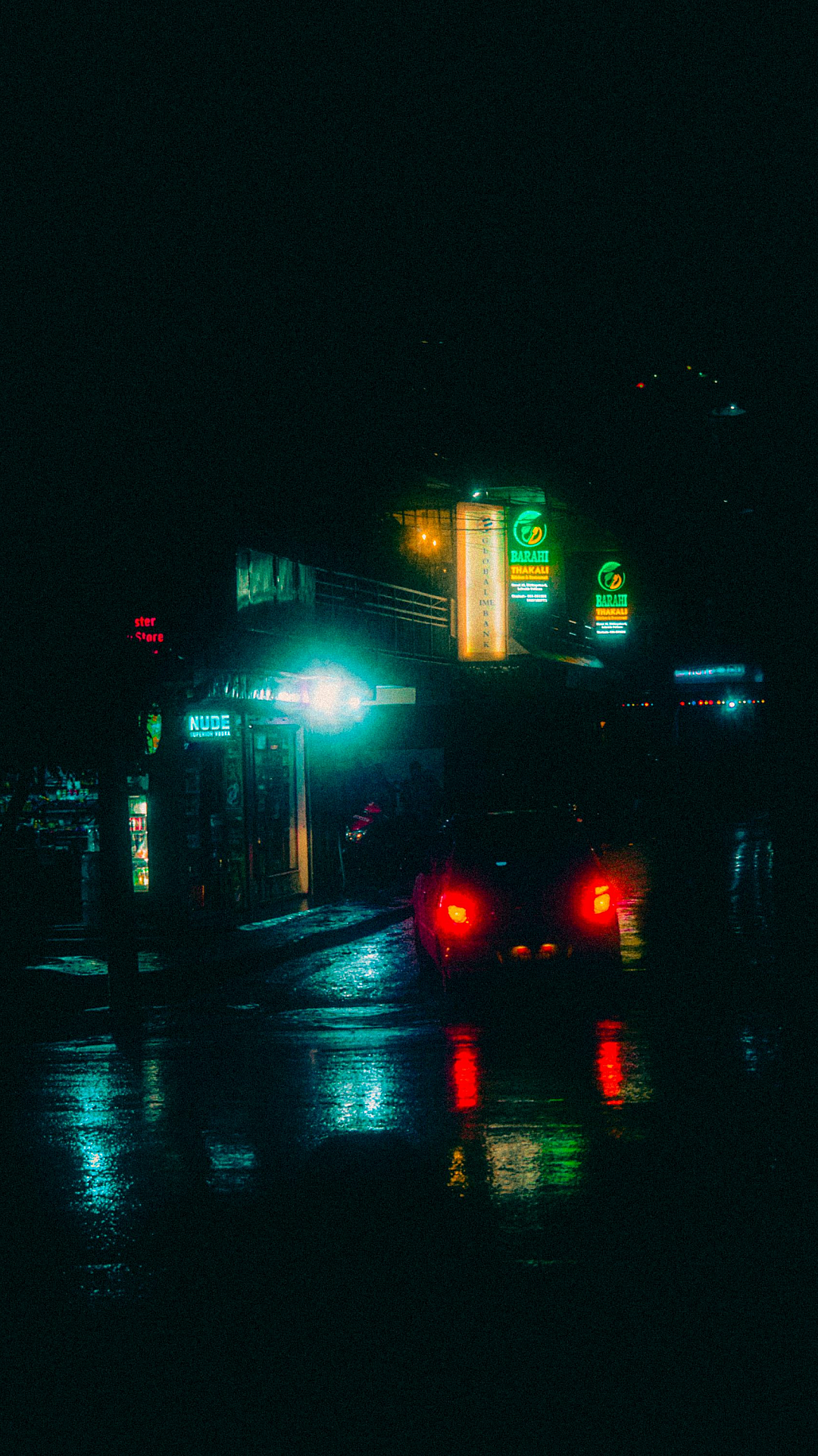 This stunning wallpaper captures the vibrant energy of a city street at night, illuminated by colorful traffic lights and glowing streetlights. A captivating urban scene perfect for your desktop.