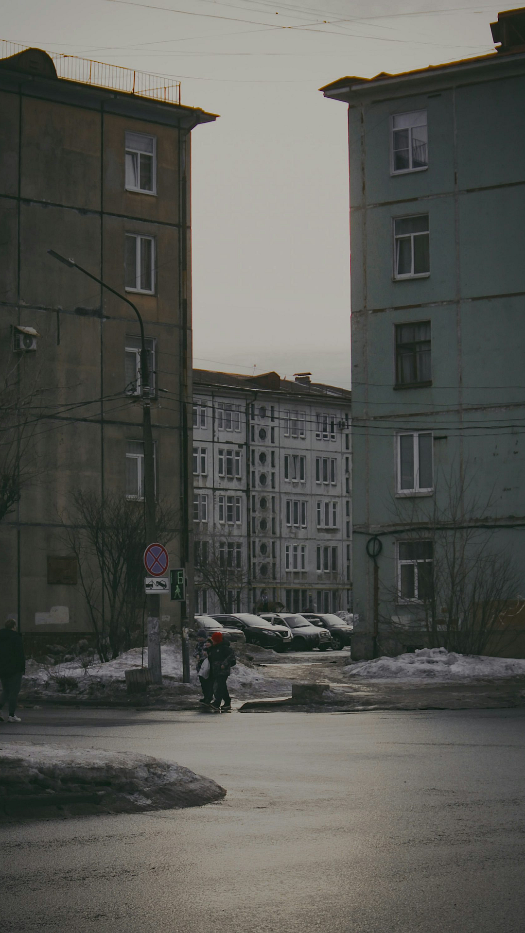 couple, walking, street, skyscrapers, city, urban, architecture, tall buildings, wallpaper, background