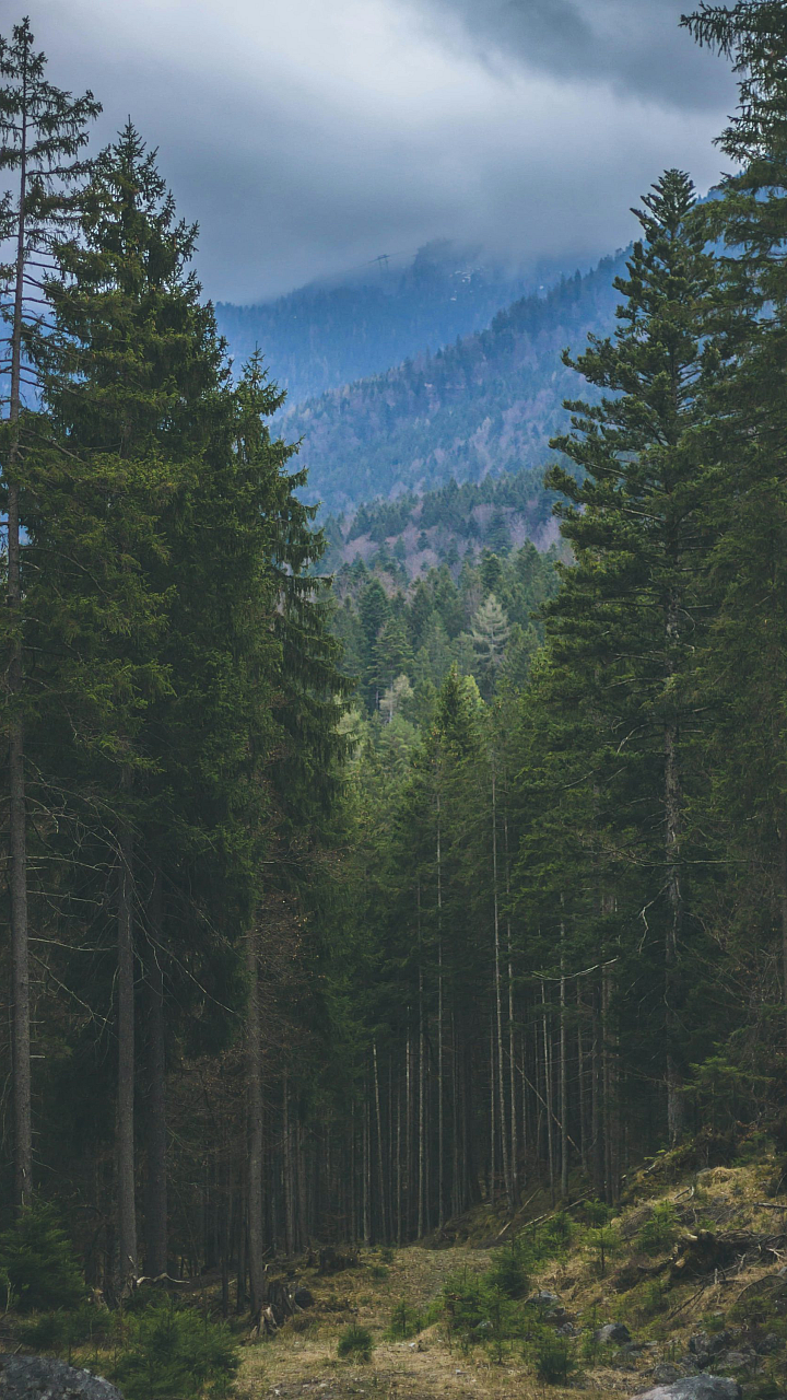 Immerse yourself in the tranquility of a lush forest, where towering trees create a breathtaking landscape. Perfect for your desktop or mobile.