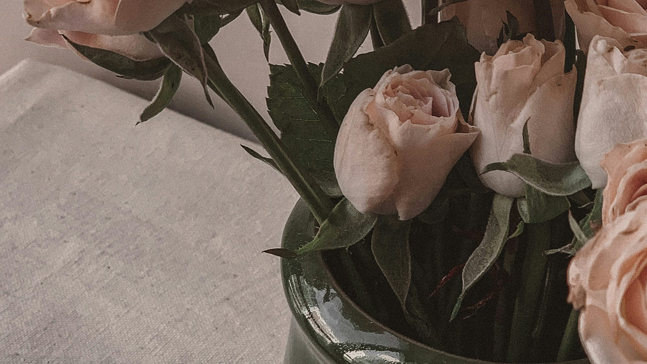 Keywords: green vase, pink flowers, floral wallpaper, spring wallpaper, nature wallpaper, flower wallpaper, pink roses, vase of flowers, botanical wallpaper, pretty wallpaper