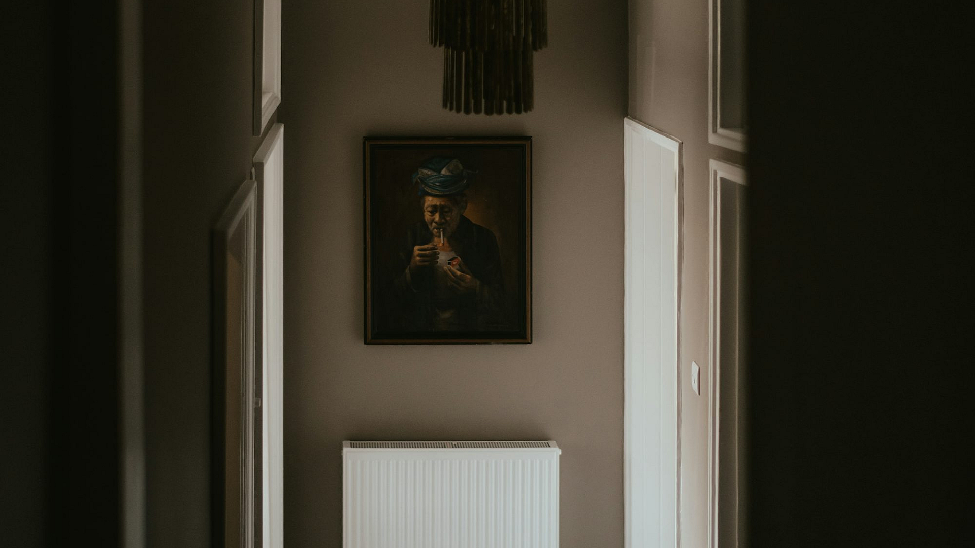 hallway, radiator, painting, wall, interior, vintage, home, decor, apartment, room