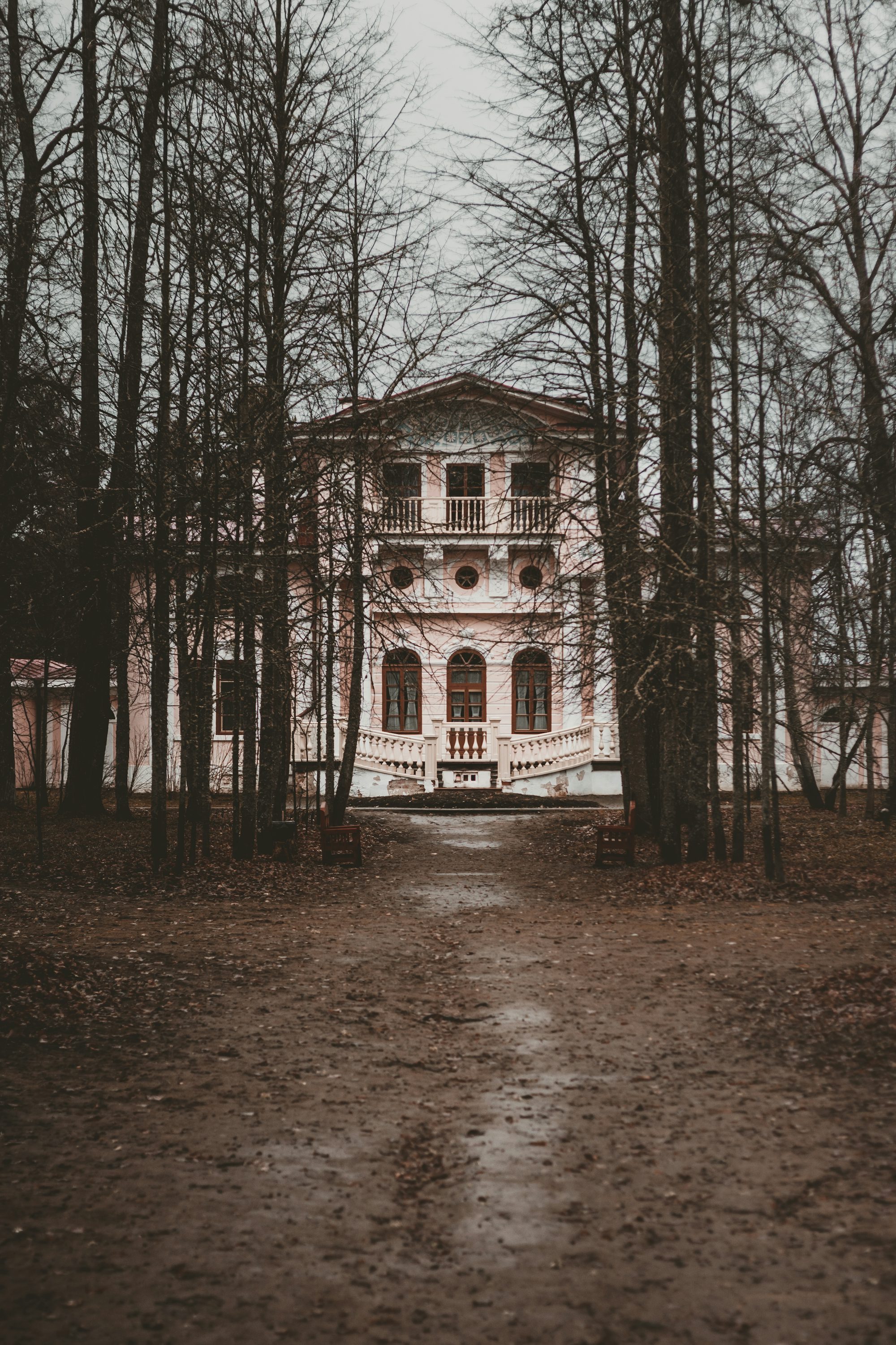 forest house, large house, trees, woods, nature, wallpaper, background, landscape, isolated house, peaceful