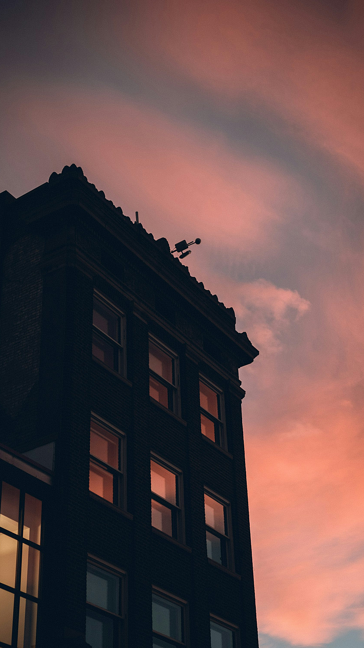 This stunning wallpaper features a tall building dominating the frame, set against a breathtaking sky. The image offers a perfect blend of urban and natural beauty.