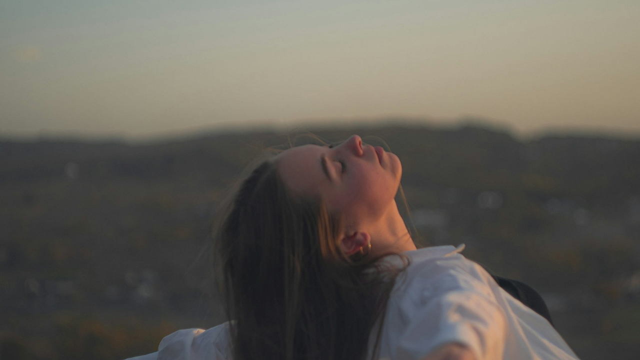 woman, field, arms outstretched, nature, landscape, freedom, serenity, wallpaper, background, outdoor