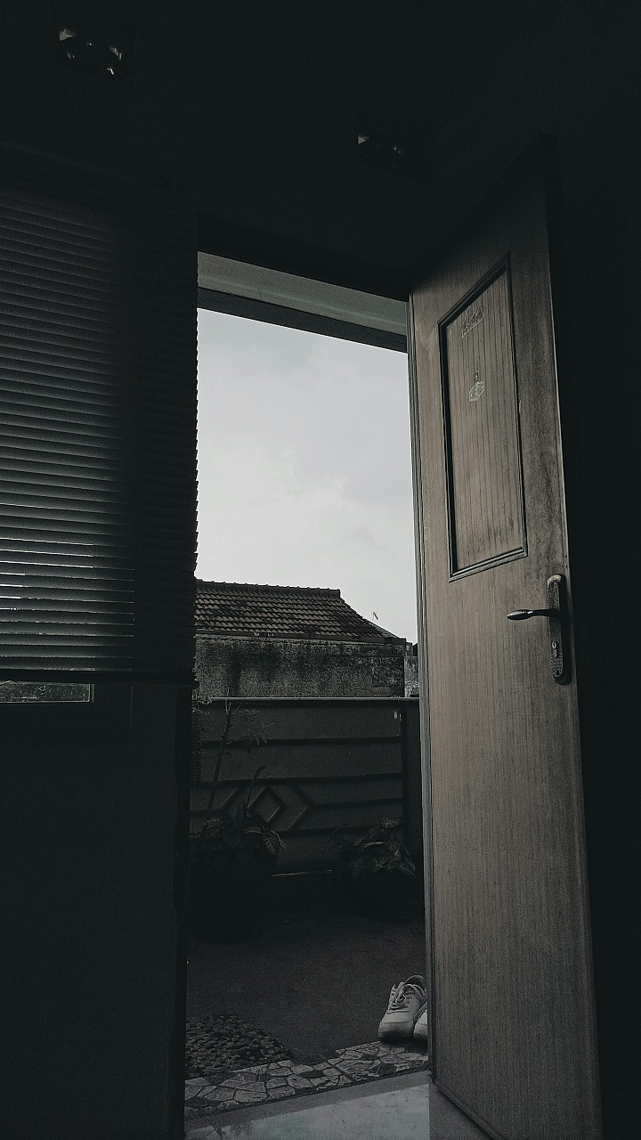 A mysterious open door beckons into an enigmatic dark room, promising untold secrets and adventures. The contrast between light and shadow creates a captivating image.