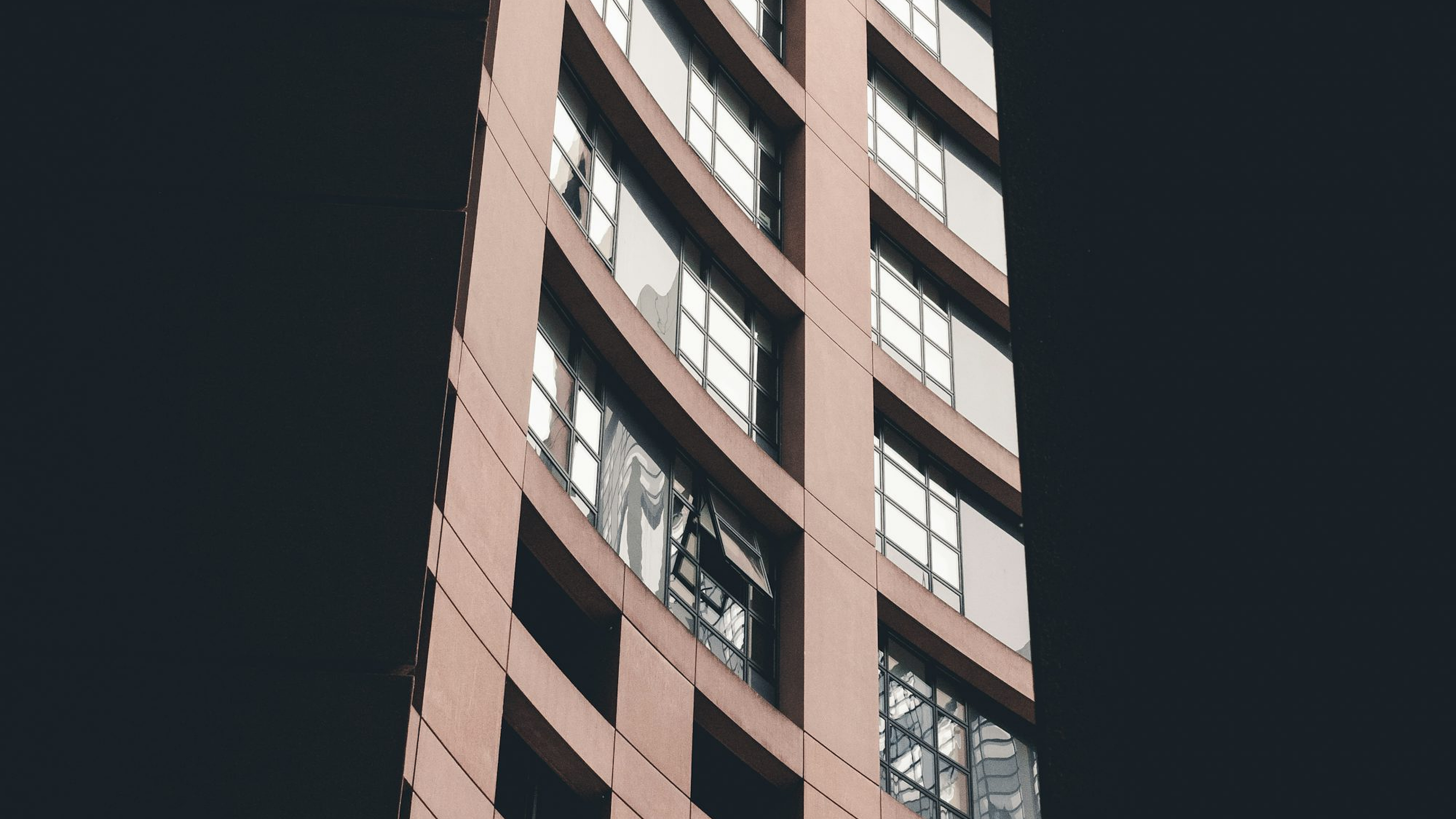 This wallpaper features a stunning image of a brown and white high-rise building, showcasing modern architecture and urban design. The contrast creates a striking visual.