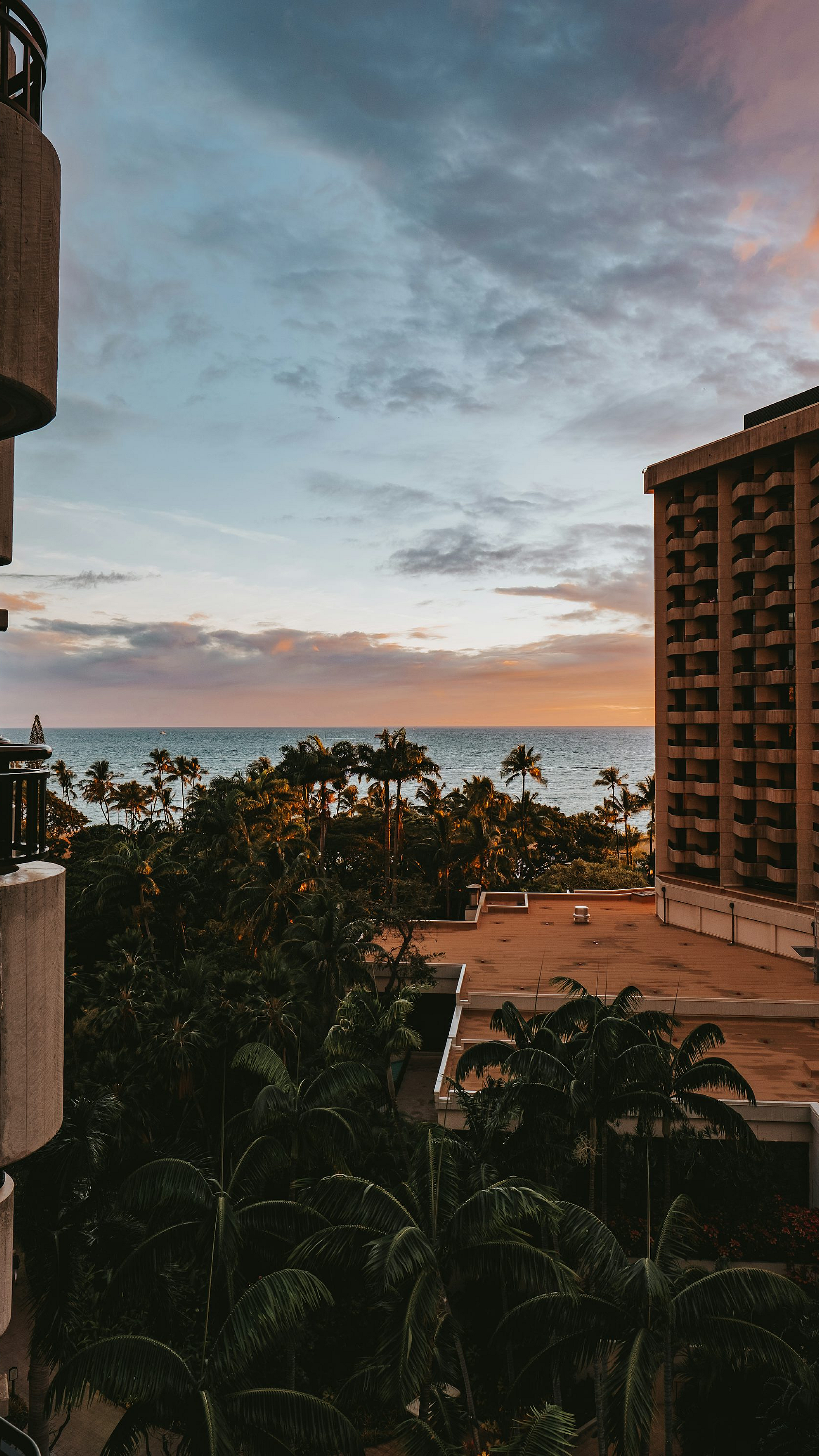A tranquil scene of a brown wooden house nestled amongst lush green trees near a serene body of water. Perfect for a calming desktop background.