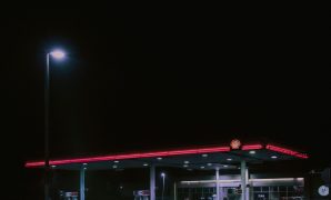 Wallpaper A Gas Station Lit Up at Night
