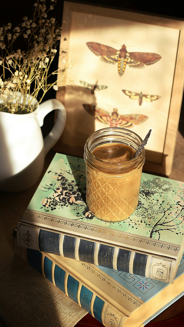 clear glass jar on white and green book
