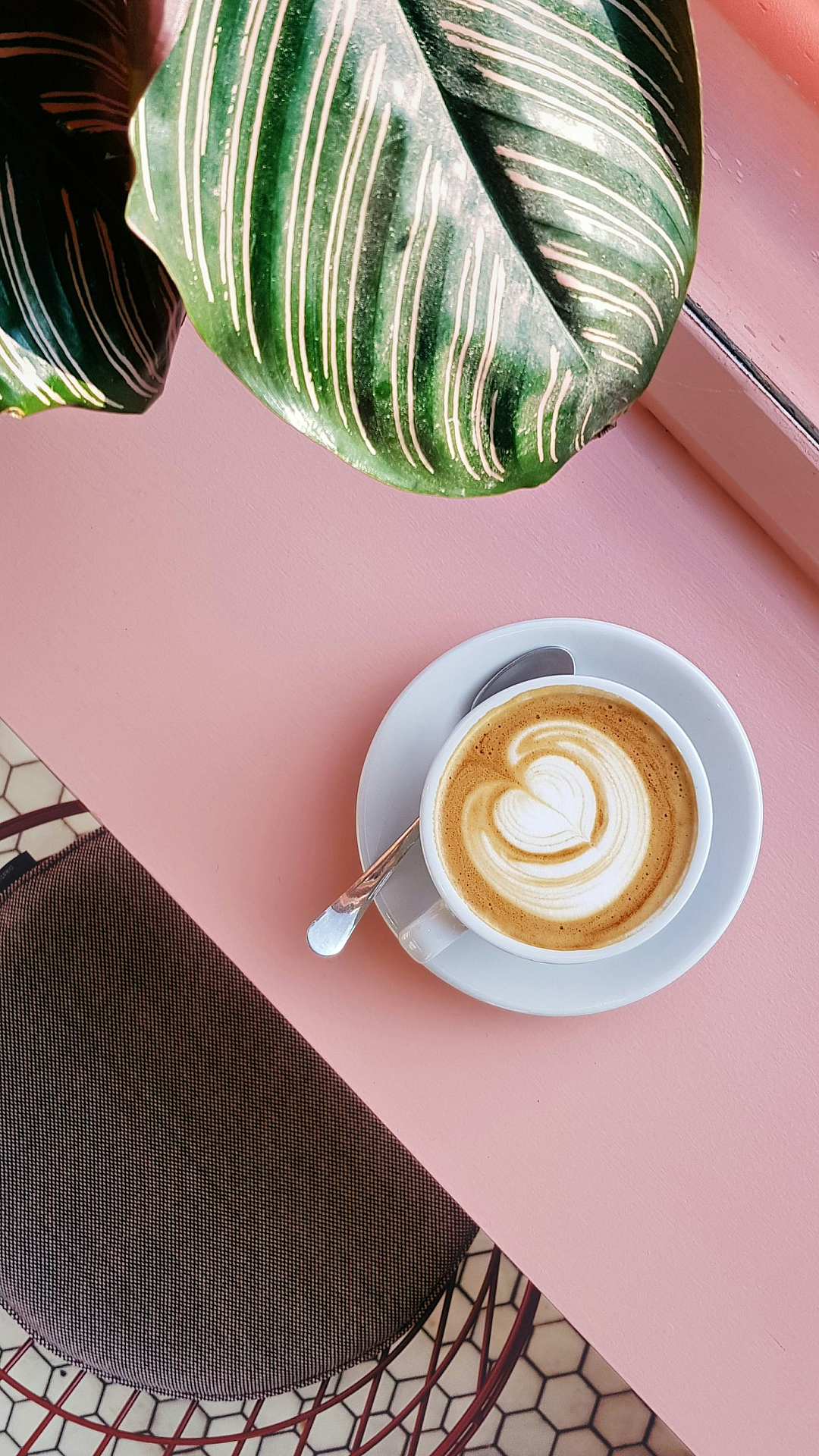 coffee, wallpaper, pink, teaspoon, saucer, cup, tabletop, drink, morning, cozy