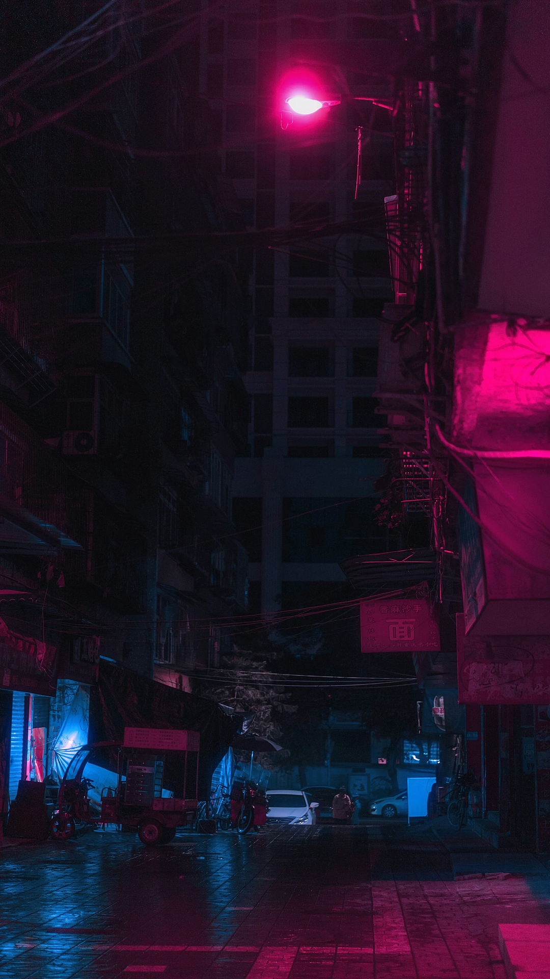 This wallpaper features a serene image of an empty street road, flanked by imposing buildings. It offers a sense of quietude and urban solitude.