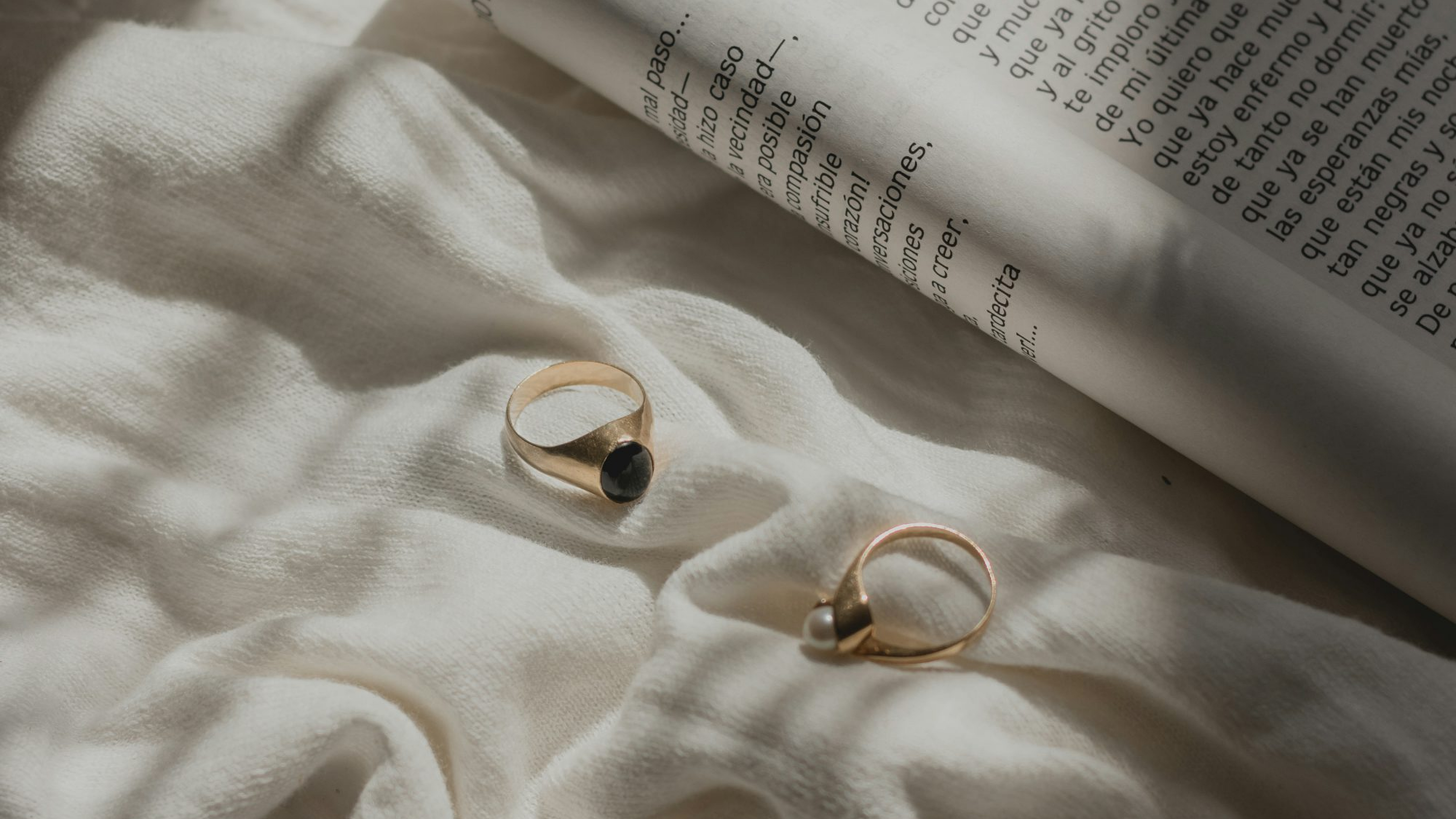 gold rings, open book, wallpaper, gold, rings, book, literature, jewelry, elegant, vintage