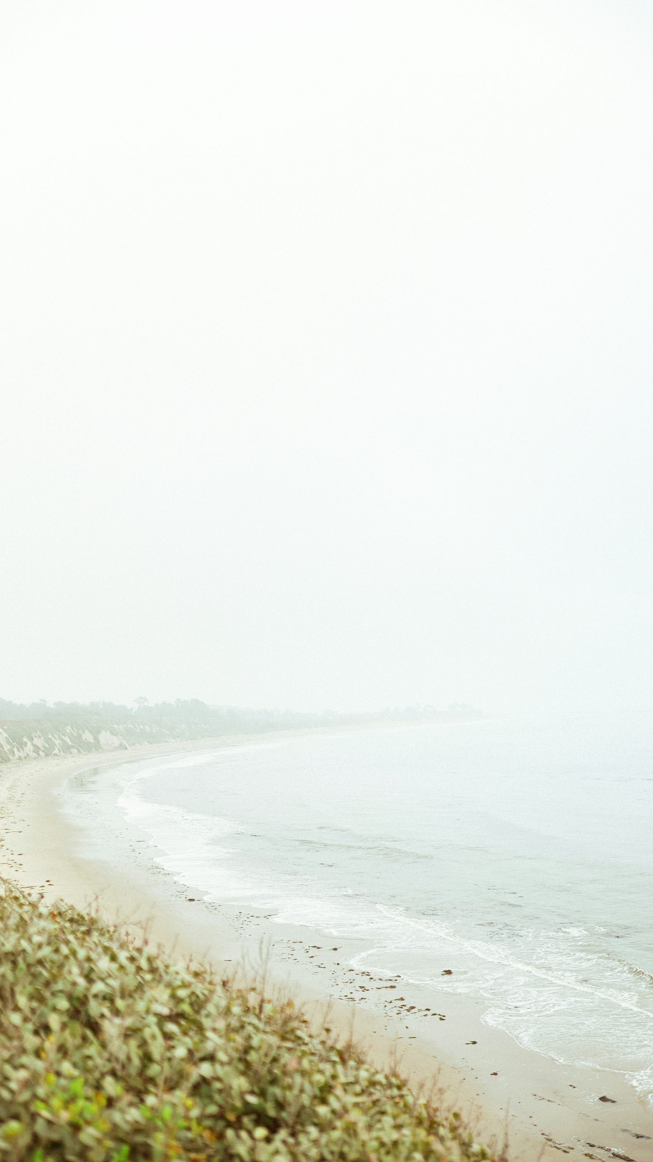A serene wallpaper featuring lush green grass gently sloping towards a calm body of water under the bright daytime sun. Perfect for a peaceful desktop background.
