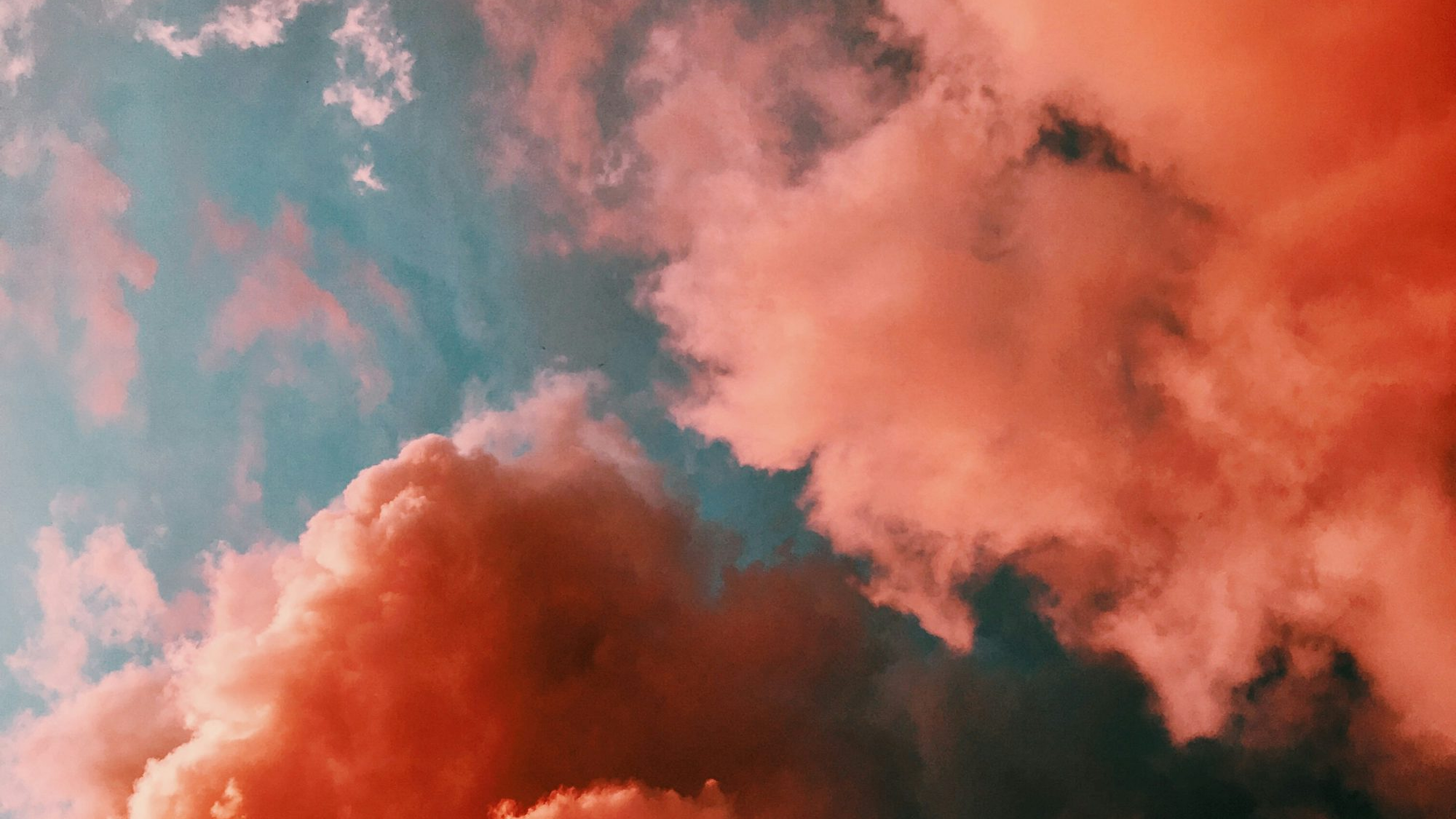 This wallpaper features vibrant orange smoke swirling against a serene blue background, creating a striking contrast and visually appealing abstract design.
