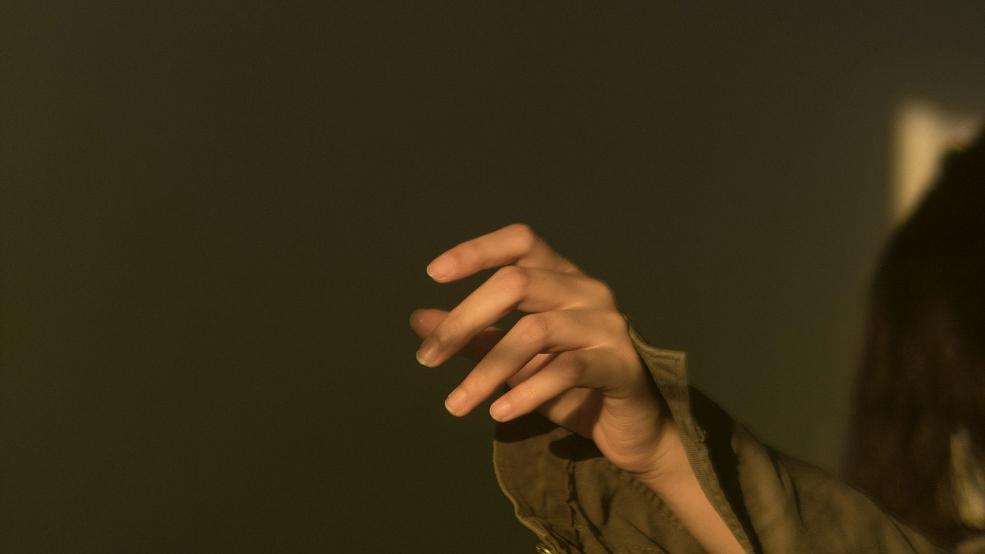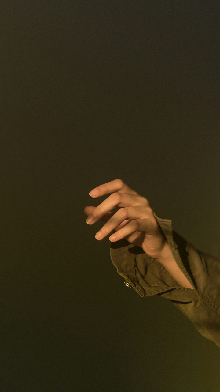 A captivating wallpaper featuring a person in a brown jacket carefully holding a piece of black textile. The image offers a sense of mystery and intrigue.