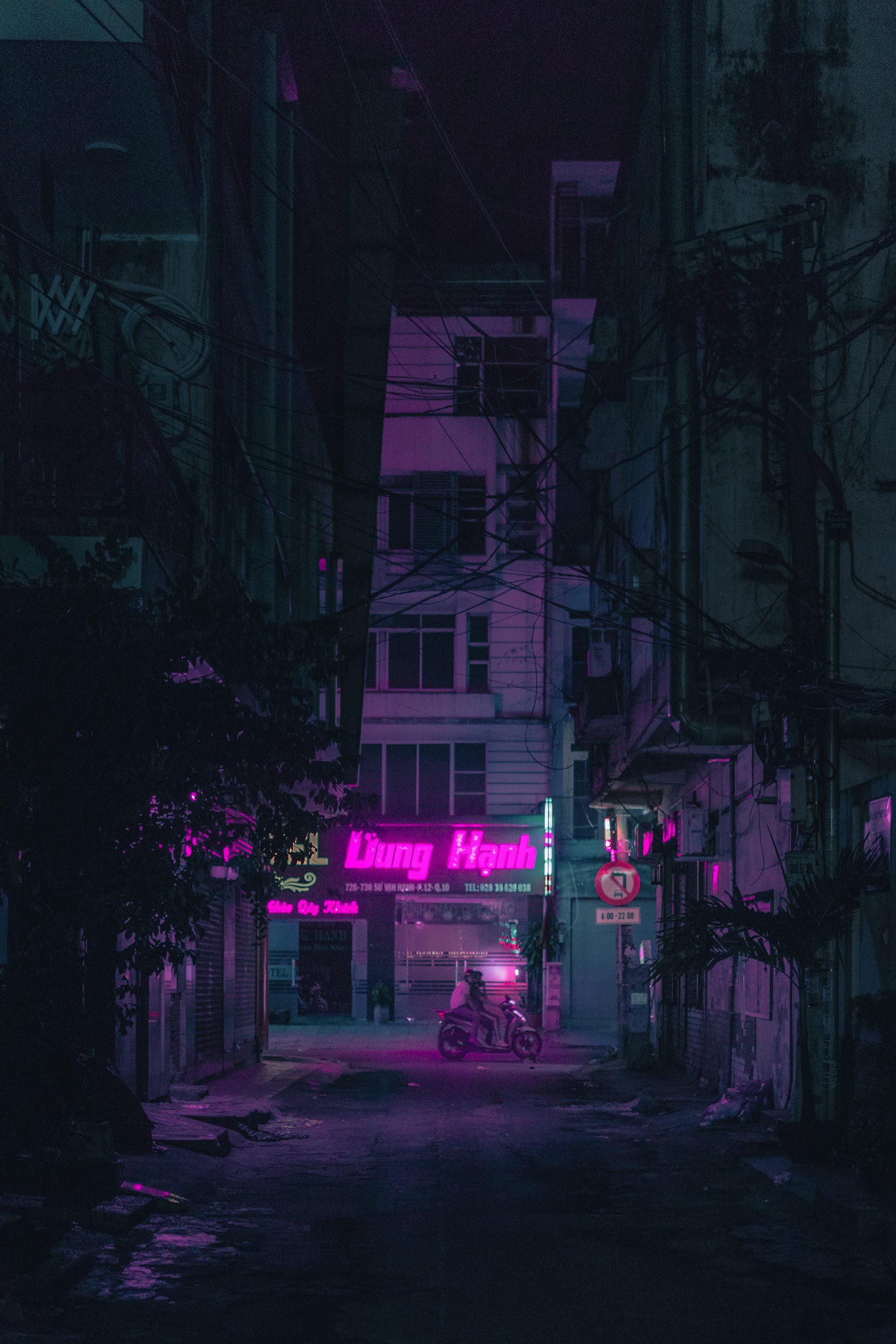 red car, night, parking, building, city, dark, vehicle, wallpaper, automotive, urban