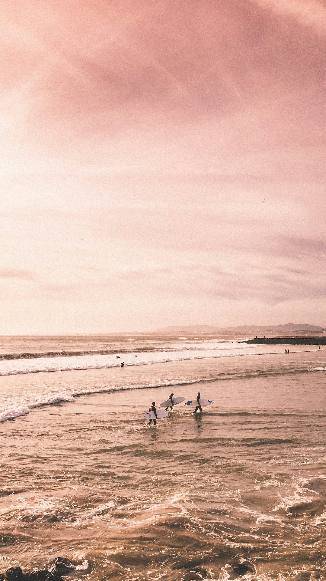 A stunning wallpaper featuring several people enjoying a day at the seashore. The image captures the beauty of the ocean and the relaxed atmosphere of the beach.