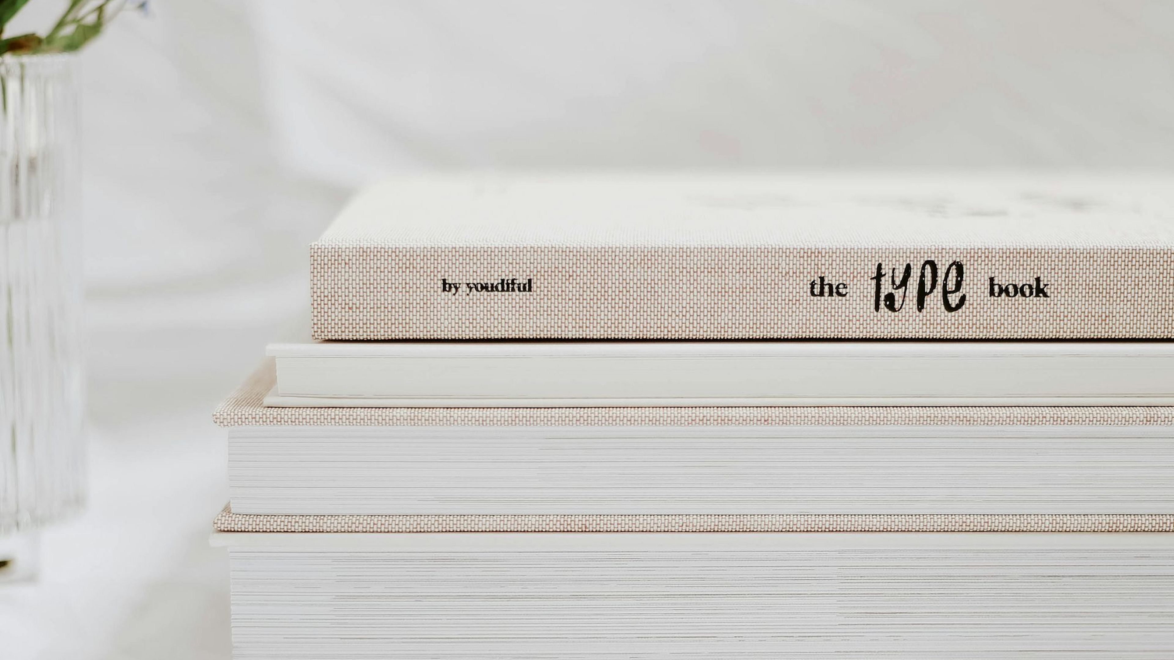 A minimalist wallpaper featuring a white and brown book resting on a white textile background. Simple and elegant.