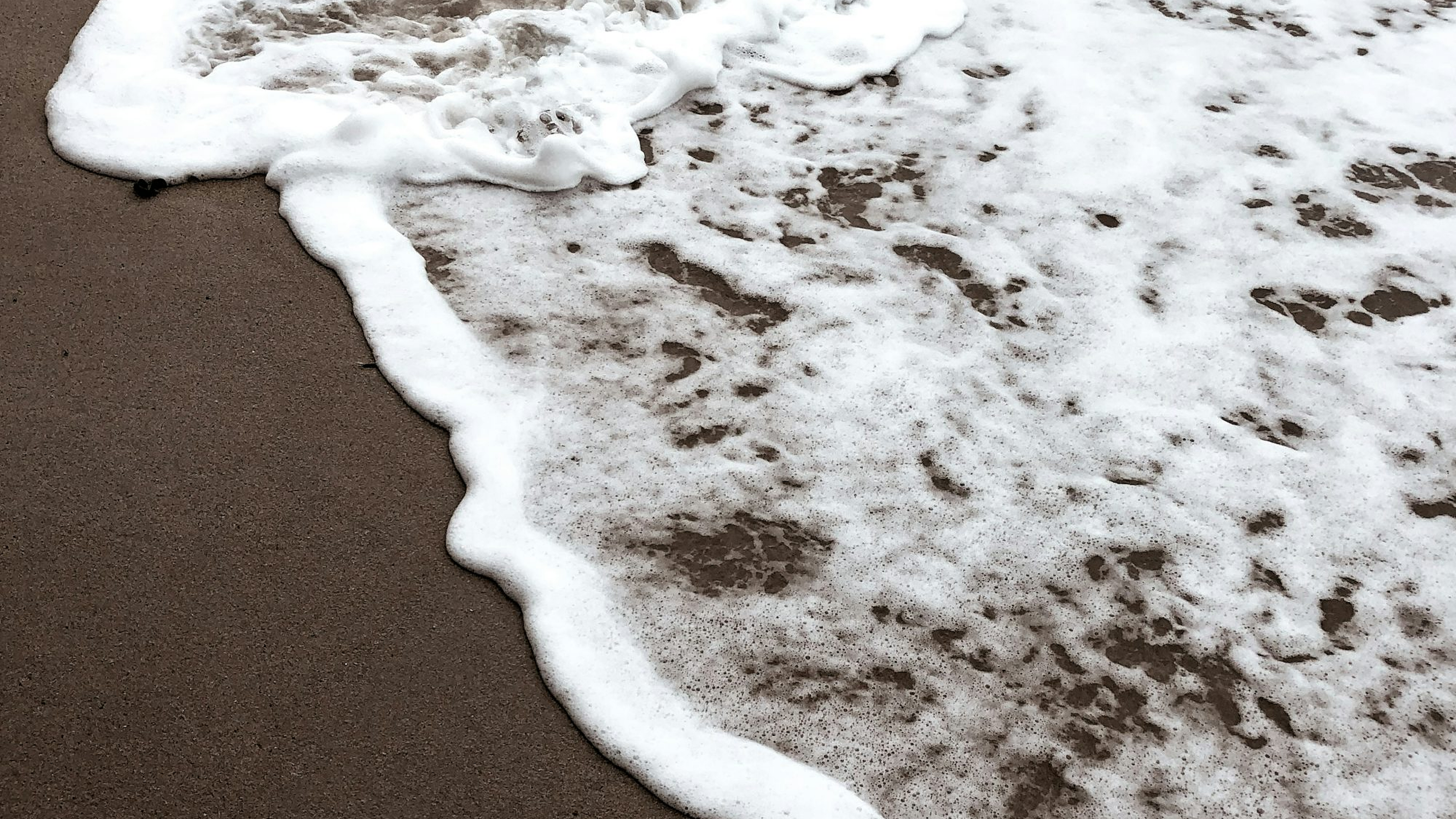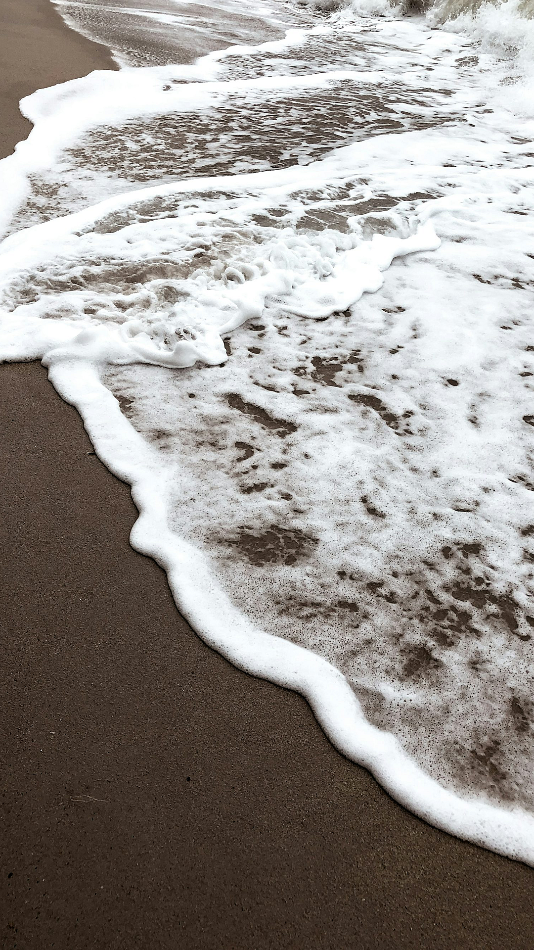 Experience the calming beauty of white and brown sea waves crashing gently. This wallpaper brings the serenity of the ocean to your screen.