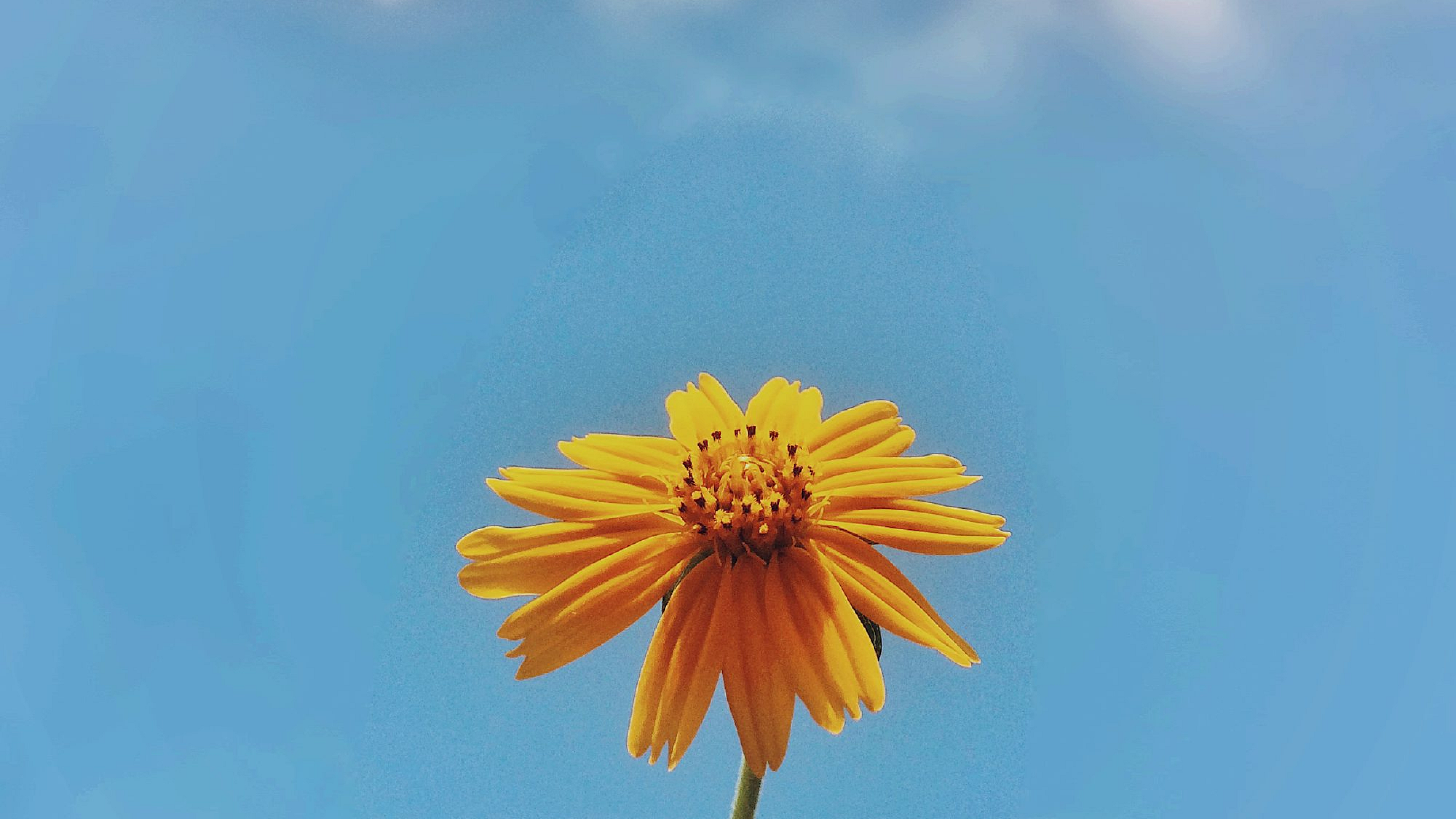 A vibrant wallpaper featuring a bright yellow flower basking in the warmth of a clear blue sky. Perfect for a cheerful and uplifting desktop background.