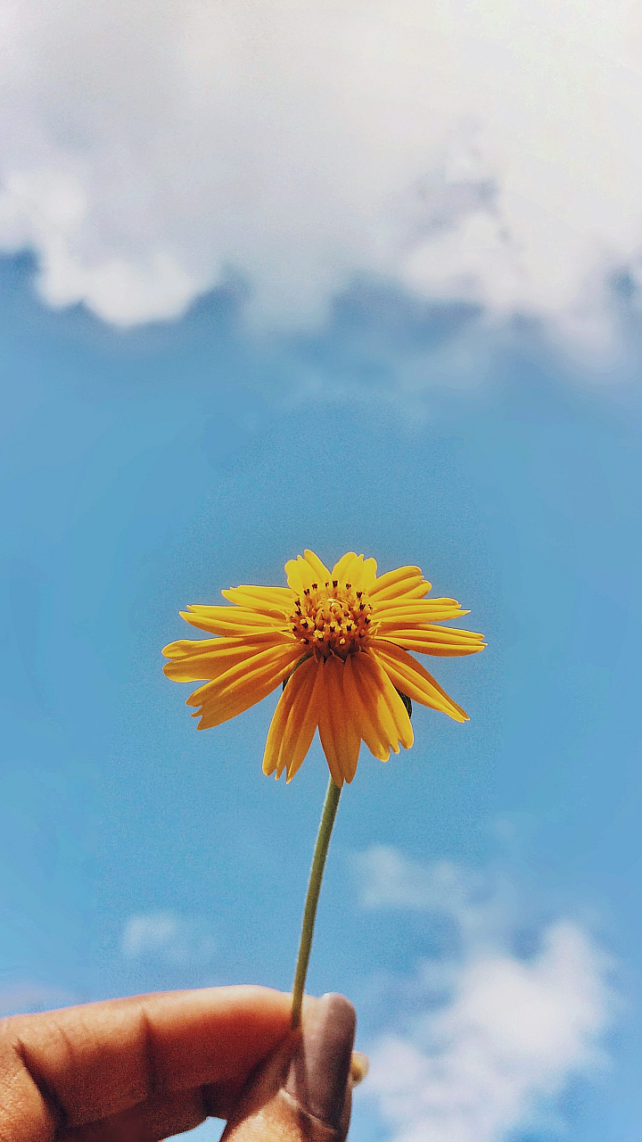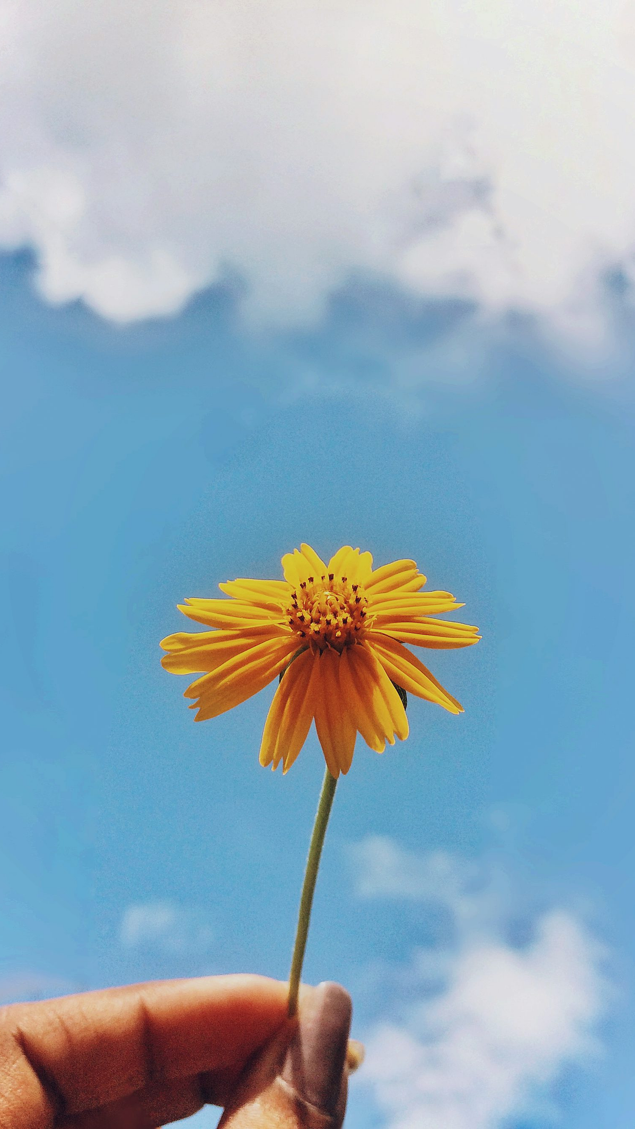 yellow flower, blue sky, flower wallpaper, nature wallpaper, spring wallpaper, summer wallpaper, floral wallpaper, sky wallpaper, bright wallpaper, landscape wallpaper